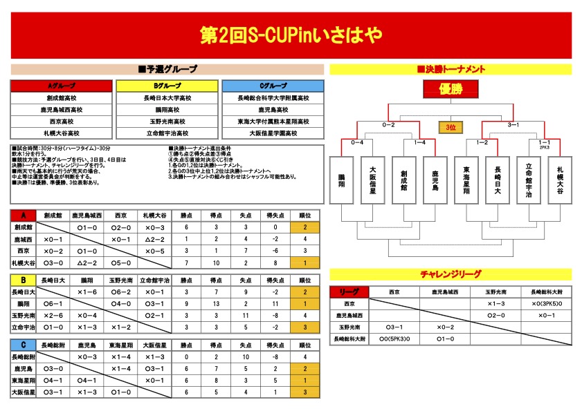 S-CUP in いさはや 決勝トーナメント1日目・結果