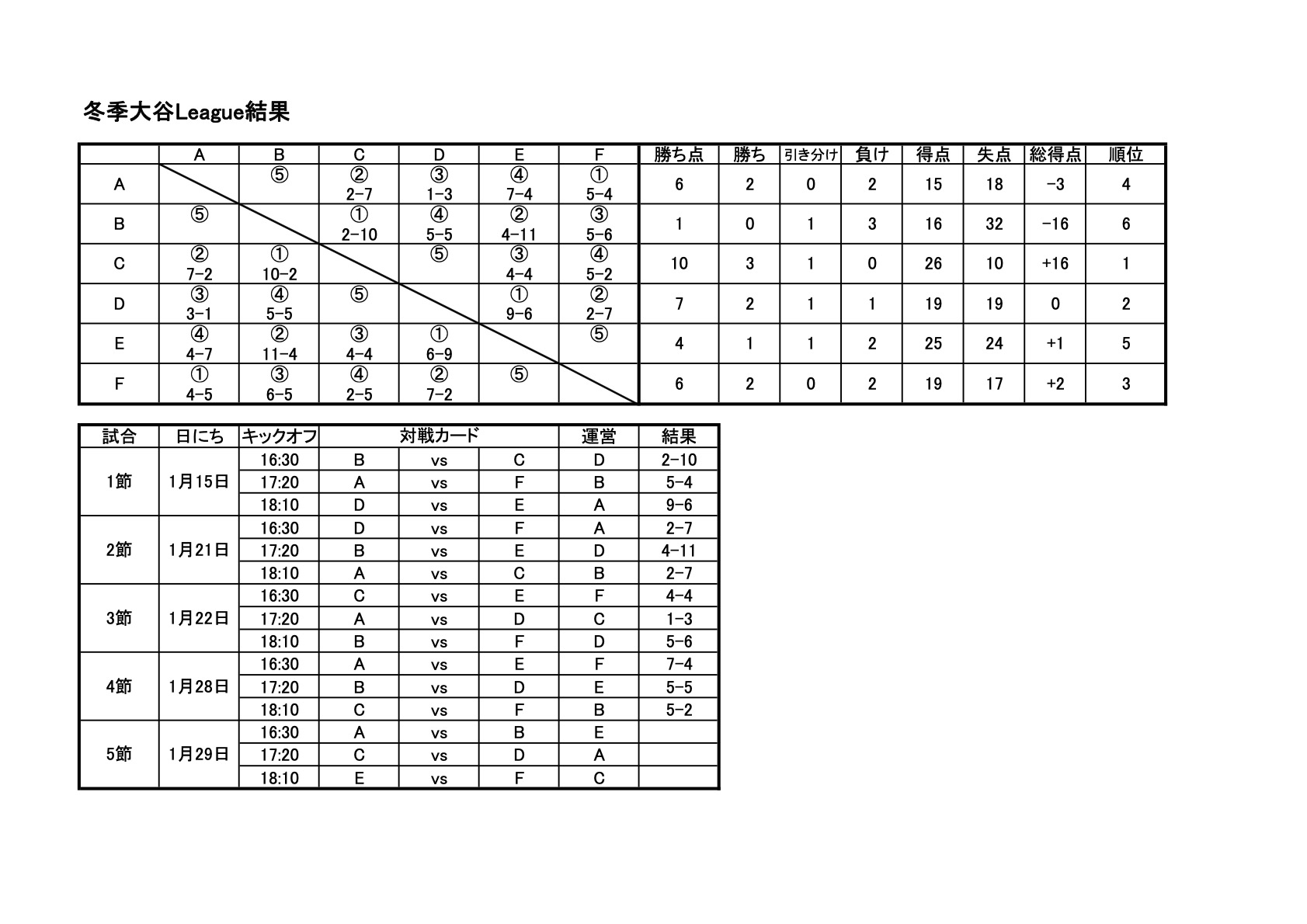 冬季大谷リーグ 2023 第1節 結果1月15日(日)に本校第一体育館で【冬季大谷リーグ 2023】第1節が行われました。 冬季大谷リーグ 2023 第1節・結果 1月1...