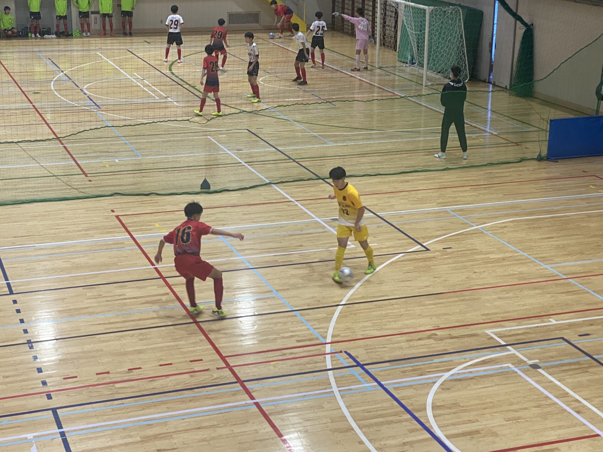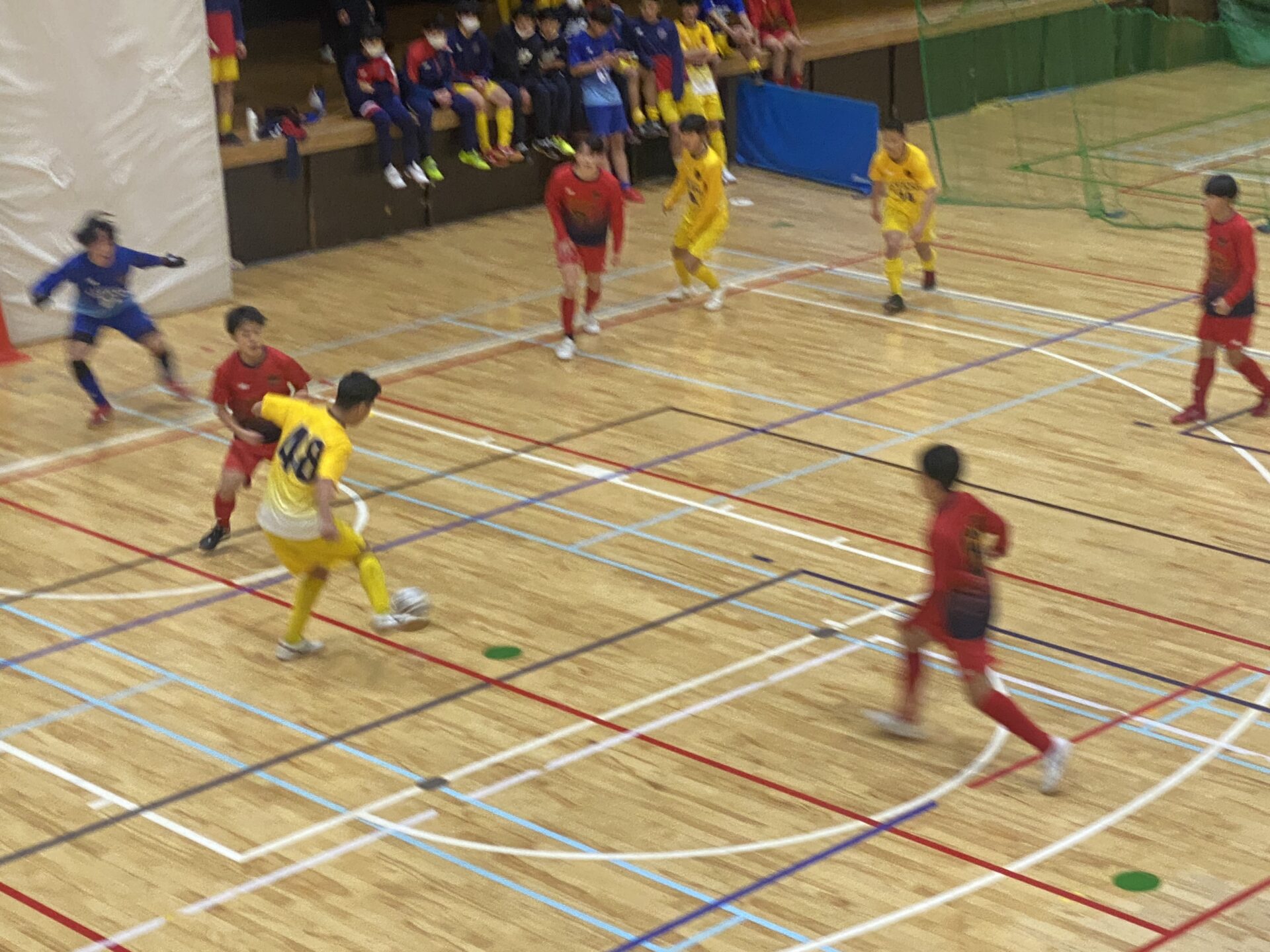 3敗でまだ勝利のないTeam Bと2勝1敗で3位のTeam Dの対戦は、開始3分に96/真浦①が見事なターンからのミドルシュートを決め、Team Bが先制します。その後はお互いに集中した守備で失点を許さず、Team Bが1-0でリードして前半を折り返します。