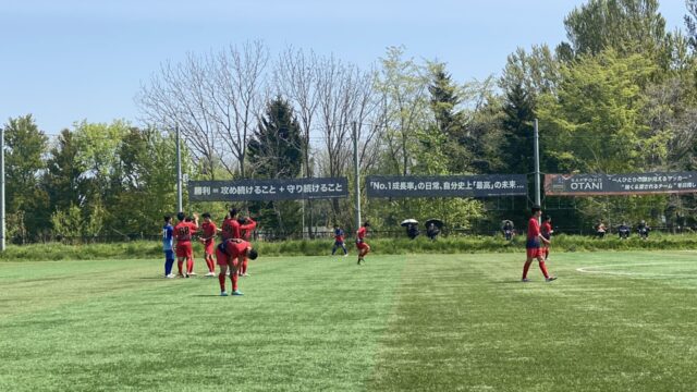 後半早々に失点しますが、徐々に相手ゴールへ迫る場面を増やし、48分に78/三戸②の得点で5-1とします。終了間際に8/今井①、19/遠藤①、83/幡鎌②がそれぞれ得点して8-1で勝利しました。