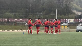 フィジカルに勝る相手に対し、押し込まれる展開となります。9分に見事なミドルシュートを決められて先制点を許しますが、17分に19/遠藤①のポストプレーから22/吉田①が豪快なシュートを叩き込んで1-1に追いつきます。その後も粘り強く対応しながら相手ゴールを目指し、84/長谷川②が決定機を作りますが、シュートが枠を捉えられません。終了間際、相手に決定機を作られますが、95/山岸②が体を張ってシュートブロックをしてゴールを許しません。試合はそのまま1-1の引き分けとなりました。