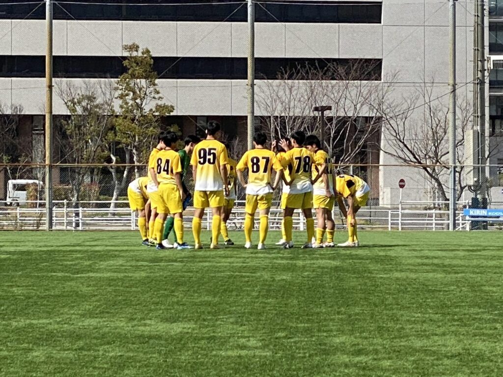 プレー強度が非常に高く、フィジカルで劣る相手に対し、押し込まれる時間が多い展開となります。20/中村①を起点にカウンターから22/吉田①がシュートを放ちますが、相手にブロックされて得点には至りません。17分に14/菊谷①のインターセプトが20/中村①へ繋がり、放ったシュートがゴールへ決まって先制点をあげます。その後も耐える機会が多くありますが、DF陣が集中した守備でゴールを与えません。40分、相手FWに一瞬の隙をつかれて撃たれたミドルシュートがGKの頭上を超えてゴールへ吸い込まれ、1-1に追いつかれます。試合はそのまま引き分けに終わりました。