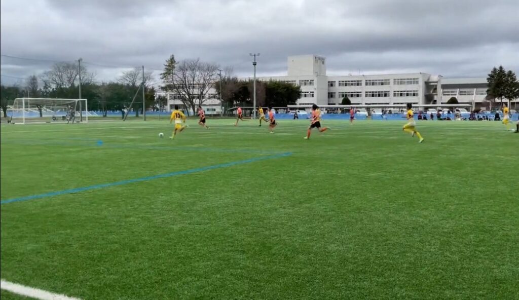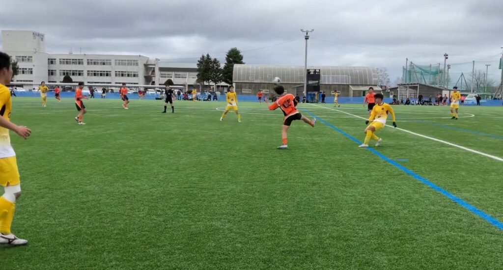 AWAY・帯広北との対戦は、2分に中盤での反応が遅れてカウンターから失点し、劣勢の展開となります。9分、中央突破からゴールを許して追加点をあげられます。19分にはハーフライン付近からのフリーキックを頭で合わせられて決められ、0-3と突き放されます。落ち着きを取り戻して徐々にボールを保持し、相手ゴールに迫る場面をつくりますが、得点にはいたらず0-3で前半を折り返します。