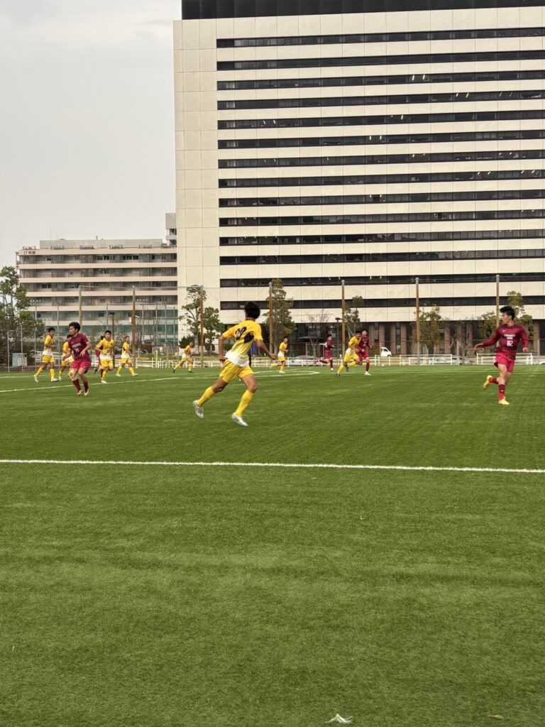 相手のプレー強度の高さに苦戦する立ち上がりでしたが、徐々に慣れてボールを保持する時間が増えます。決定機をつくるものの決め切れない中、45分に9/加藤②からパスを受けた17/髙橋拓②が決めて1-0で勝ちました。
