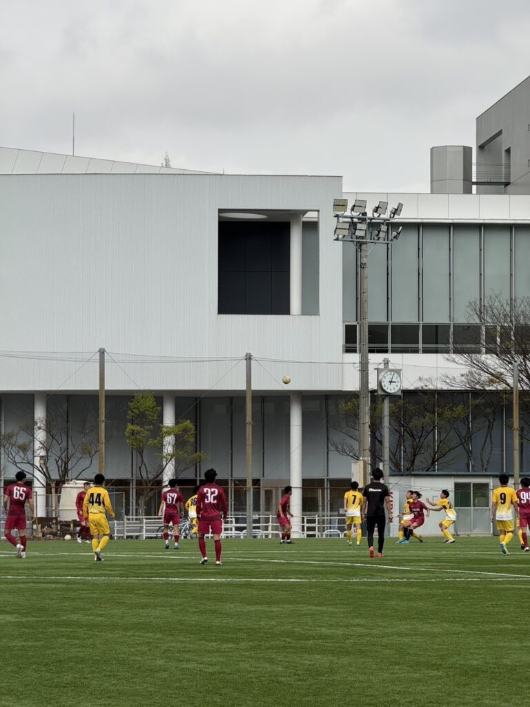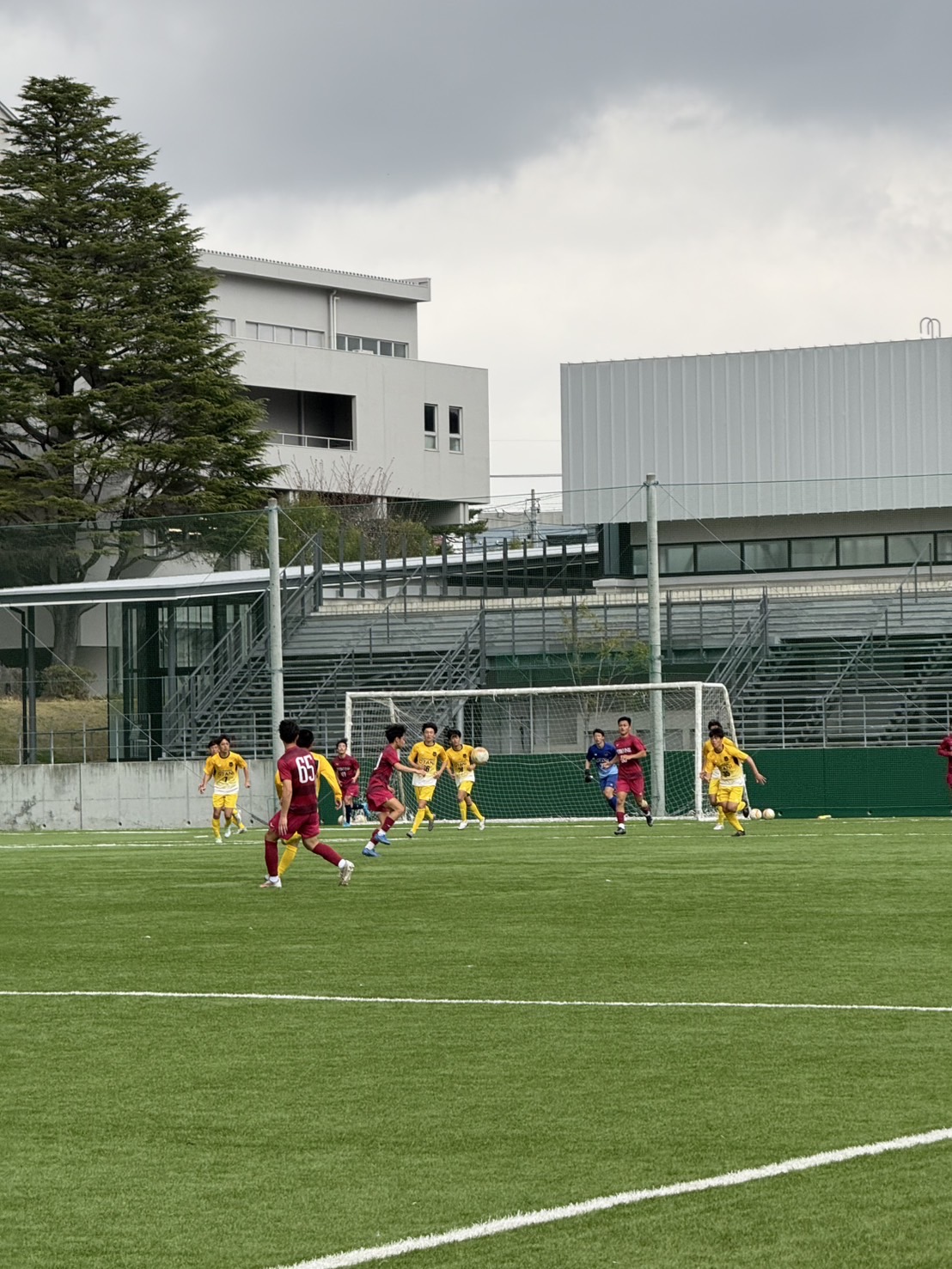 九州学生サッカーリーグ優勝の福岡大との対戦は、相手のプレー強度の高さへ徐々に慣れ、カウンターから何度か決定機をつくりますが決め切れず、1本目を0-0で終えます。3本目は相手のプレー強度がさらに上がり、53分にDFの対応の遅れから失点します。前線からのプレッシングに効果的な前進ができず、67分にCKを頭で合わせられて失点し、リードを広げられます。直後にDFラインでボールを失って失点し、0-3と突き放されます。最後まで諦めずに相手ゴールを目指しますが、得点できずに0-3で負けました。