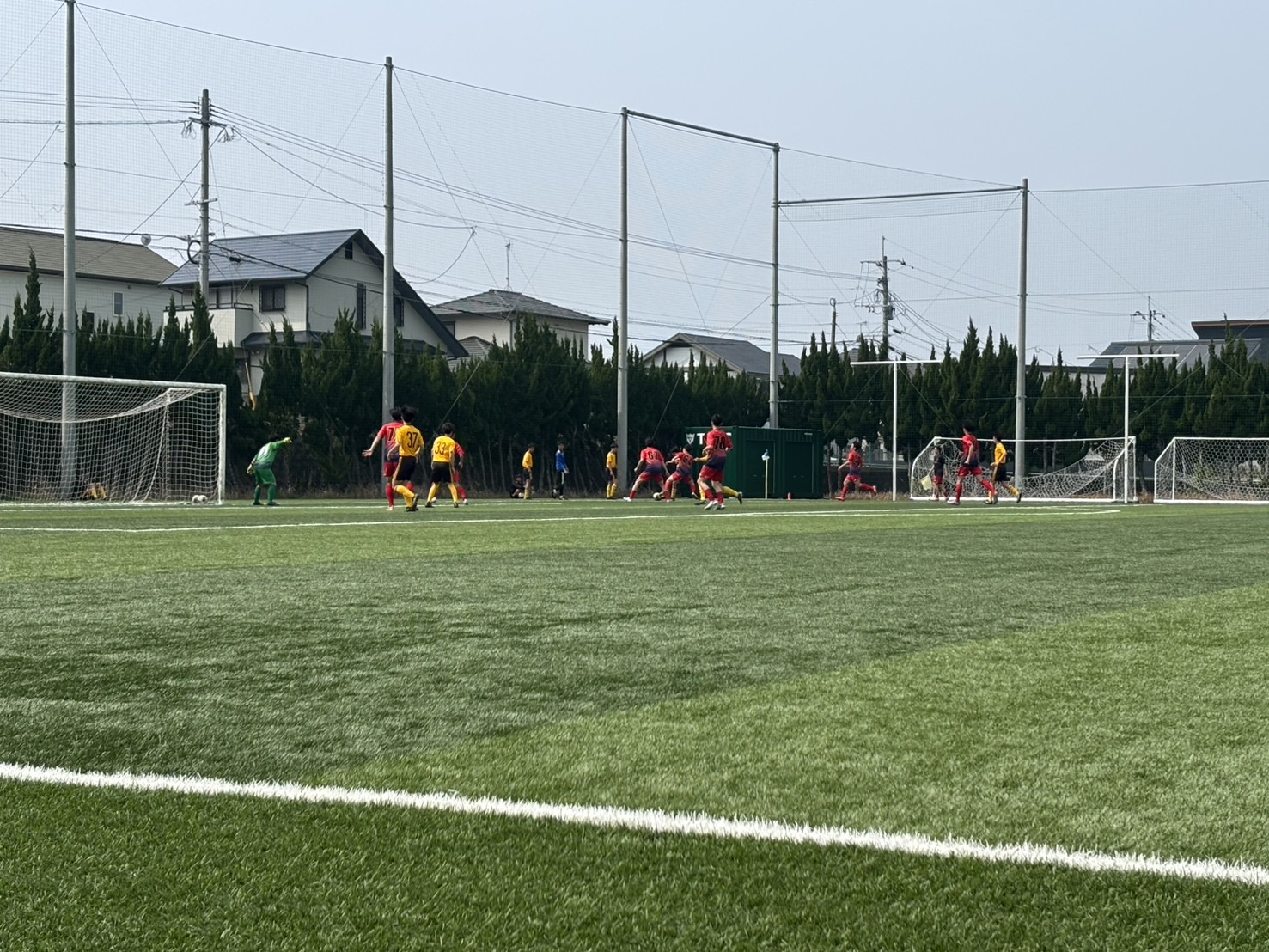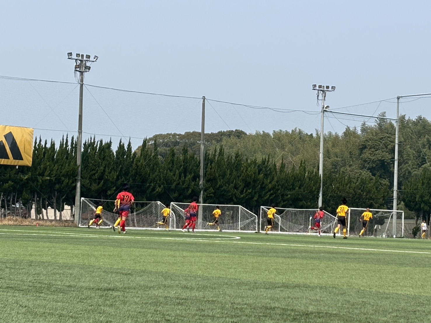 遠征最終日は福岡県へ移動して東海大福岡(福岡)と対戦しました。立ち上がりから相手の圧力に押されてゴールへ迫られる苦しい展開となります。17分に右サイドを突破されクロスに合わせられて先制点を許します。25分過ぎから主導権を握ってボールを保持すると、78/中川①のクロスに89/山内①が合わせて決定機をつくりますが、ポストに当たって得点にはいたらず前半を0-1で折り返します。後半も一進一退の攻防が続きましたが、直接FKとカウンターから2失点して0-3で敗れました。