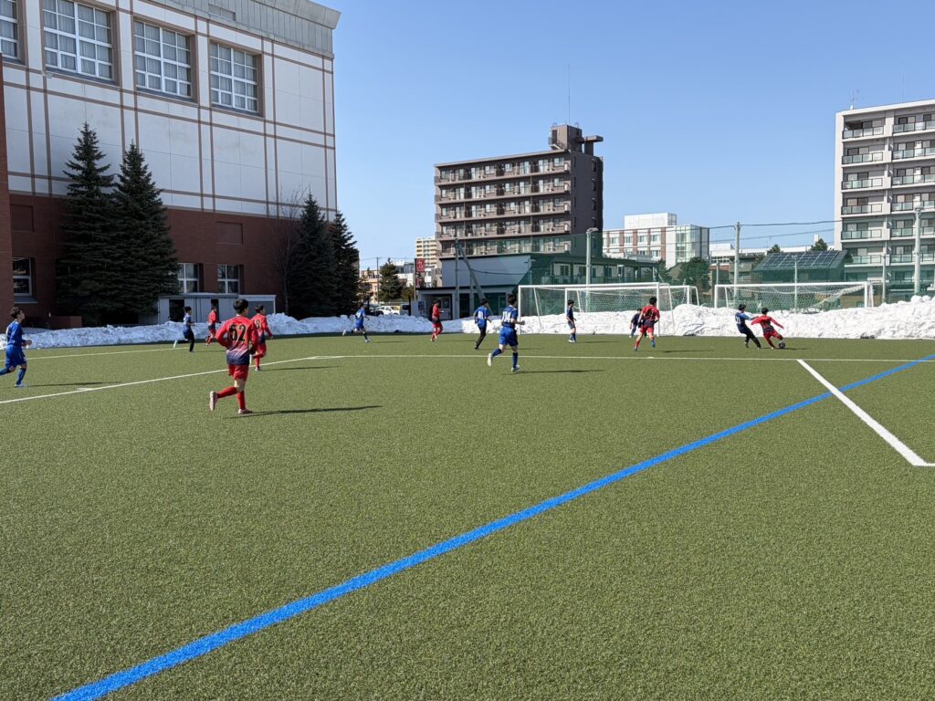 Top teamは札幌大谷丘珠グラウンドで今シーズン初のトレーニングマッチとなりました。この時期にフルピッチで活動できるのはこれまでなく、保護者のみなさんが連日除雪を行なってくださったからこそ実現できました。ご協力いただいた保護者のみなさんに心より感謝します。