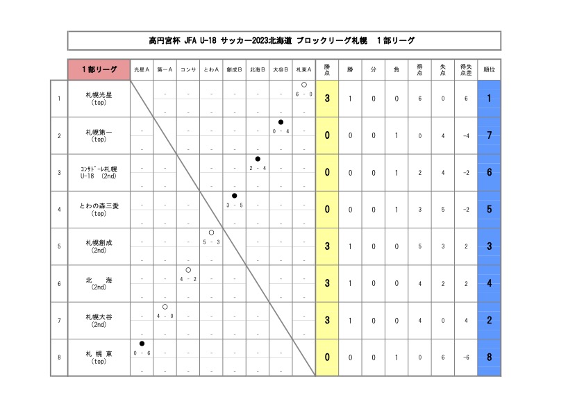 高円宮杯U18 ブロックリーグ札幌2023 第1節・結果