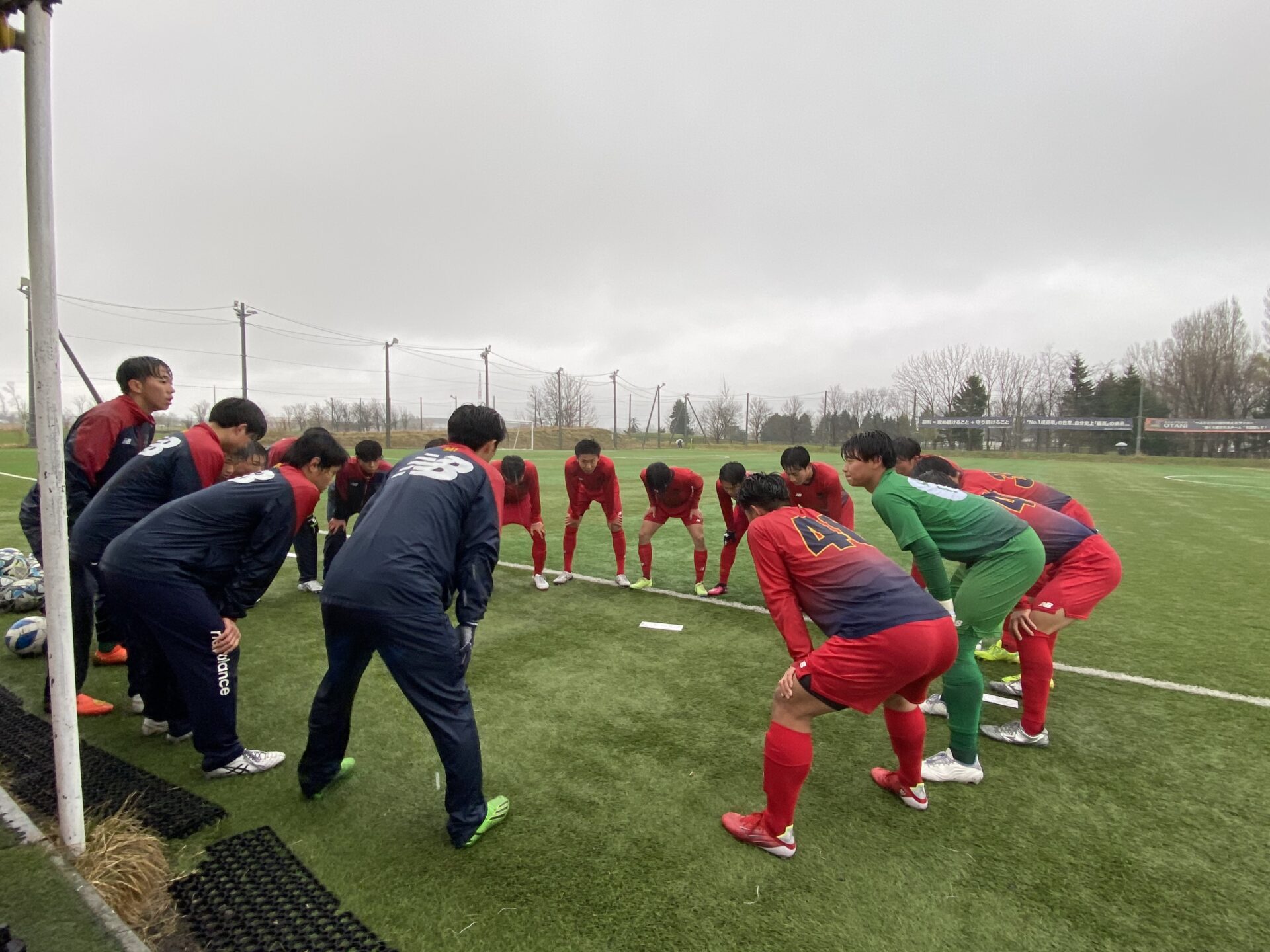 ピッチ上に水が浮くコンディションで行われた札幌平岸との対戦は、ボールを保持しながら相手ゴールを目指す中で迎えた9分に78/三戸②のクロスを75/會田②が頭で合わせて先制します。その後も押し込む展開が続きますが、決定機を作ることができず1-0で前半を折り返します。