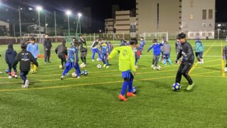 雨が降り続き、気温が低い中、1年生で構成された4th teamの初戦が始まります。開始直後から丁寧にボールを保持しながら、積極的に相手ゴールへ向かいます。3分に11/高山①がペナルティエリア内で相手をかわし、豪快なシュートを決めて先制します。直後にカウンターから失点を許し、1-1に追いつかれます。終始ボールを保持して決定機を作りますが、相手GKのファインセーブにより追加点を奪うことができません。終了間際に左CKから3/大石①が頭で決めて2-1とリードして前半を折り返します。