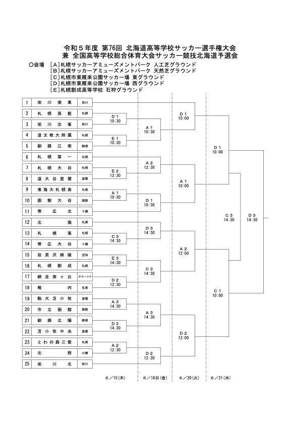 2023年度 高体連サッカー北海道大会 1回戦・予定