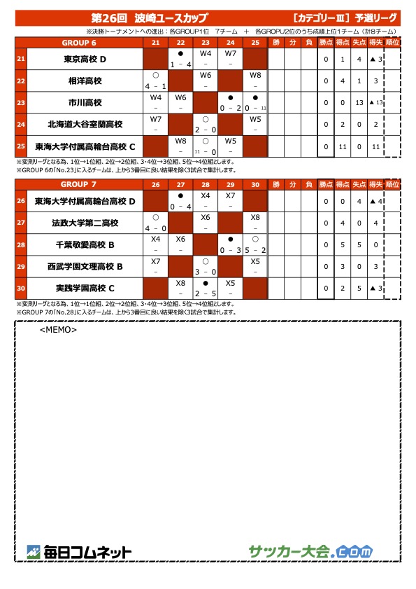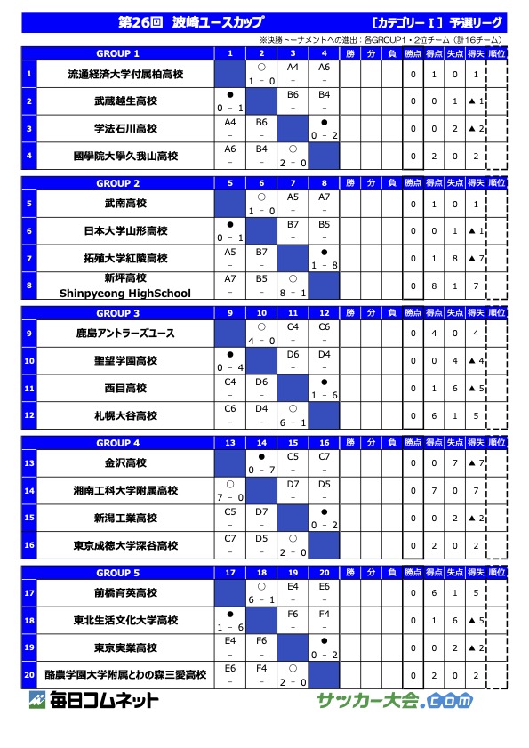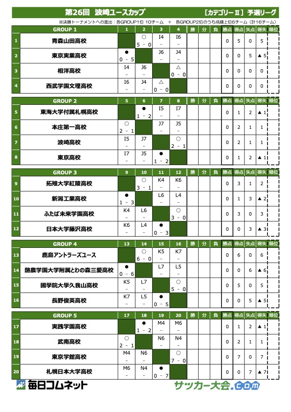 第26回 波崎ユースカップ2023 予選ラウンド1日目・結果