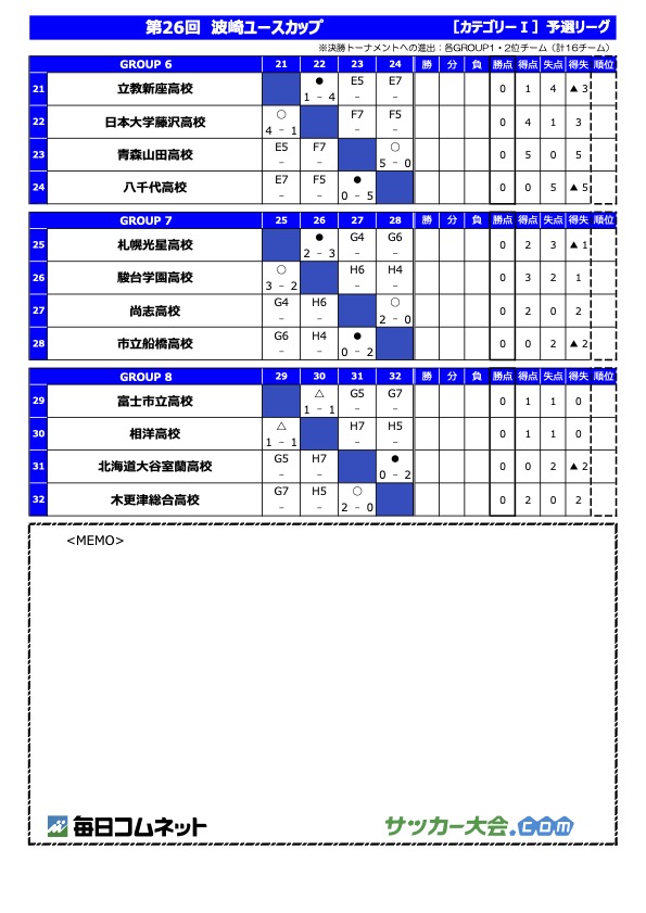 得点者 9/加藤一爽①【札幌ジュニア】3点、22/吉田朝陽①【フォルテ】2点、4/前田晴陽①【アンフィニ】