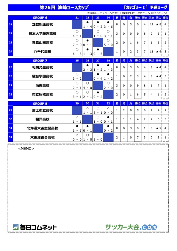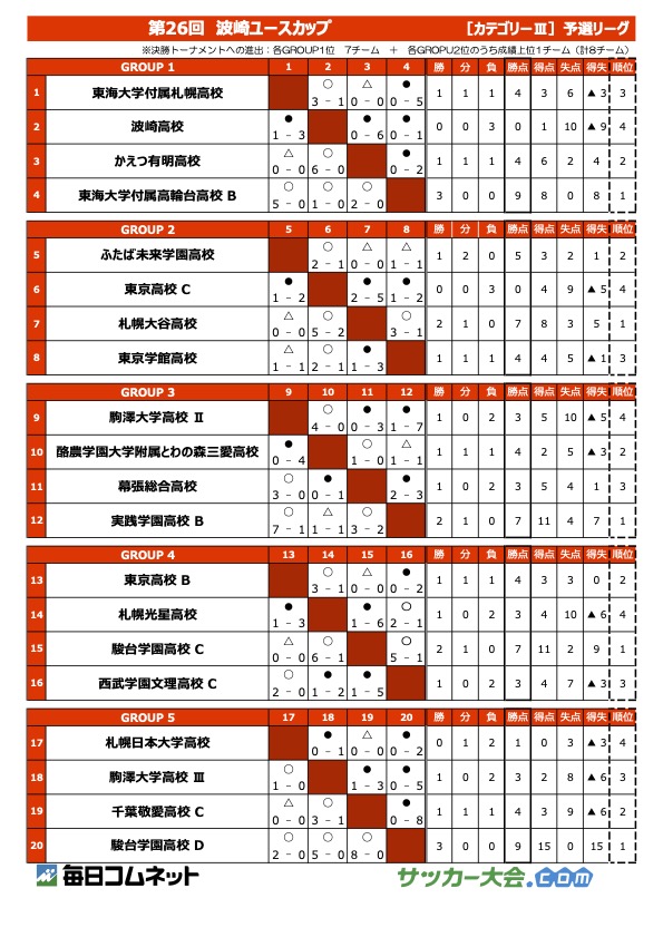 カテゴリーⅠは格上相手に怯まず戦ったものの連敗で終わり、1勝2敗の3位でした。決勝トーナメントには進めず、順位決定戦となります。カテゴリーⅡは3勝、カテゴリーⅢは2勝1分でいずれもグループ1位となり、決勝トーナメントへ進出しました。体力的に厳しい状況ではありますが、残り2日間も勝利と成長を目指します。サポーターのみなさん、応援よろしくお願いします。