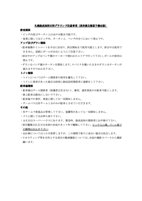 2023年度 高体連サッカー北海道大会 1回戦・予定