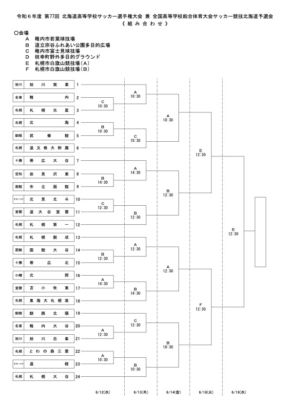 高円宮杯U18 プリンスリーグ北海道2024 第6節・予定