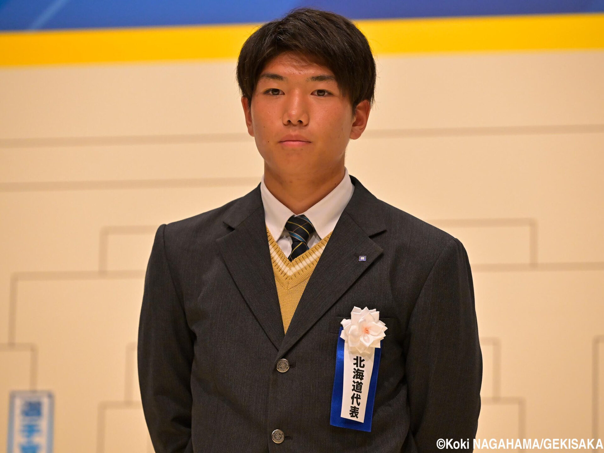 5年ぶりにリモートではなく集合しての抽選会に、本校サッカー部主将の笹修大③【札幌大谷中】が参加しました。