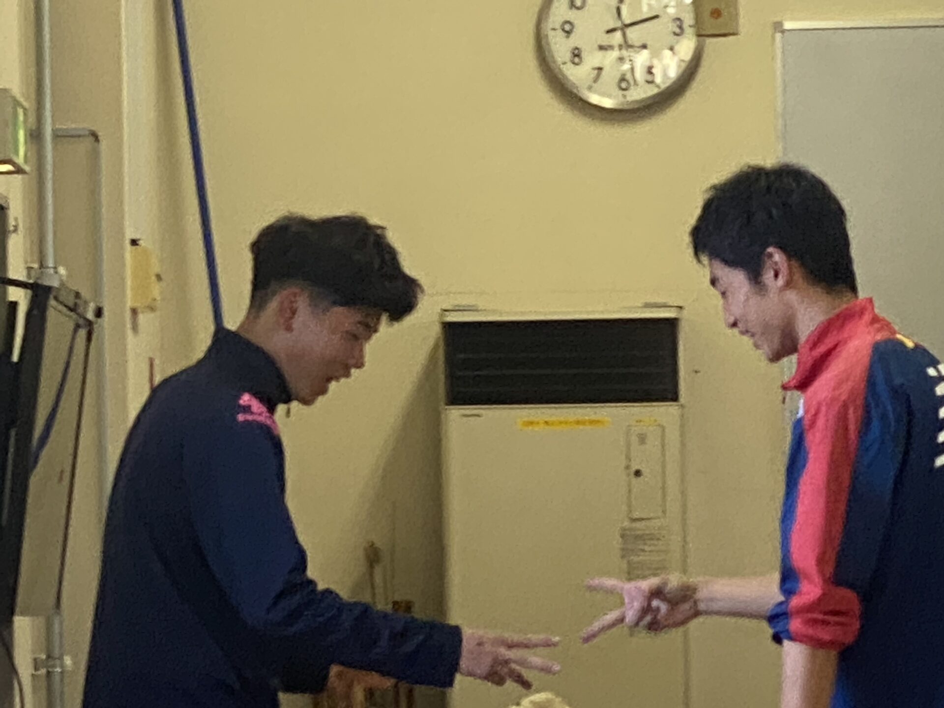 異なる学年で2人組をつくり、アドジャン(2人同時に指で1〜5の数字を示す)を行う。1分以内に同じ数字が出た回数を数える。
