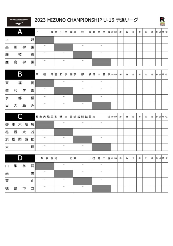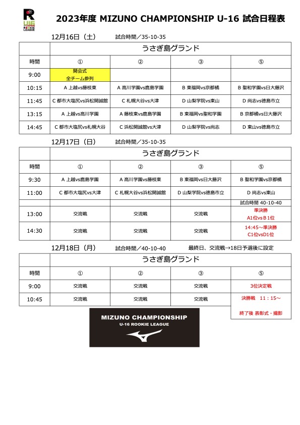 2023 MIZUNO CHAMPIONSHIP U16 組合せ決定!