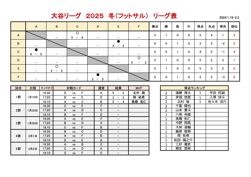 1月19日(日)に本校体育館で【大谷リーグ 2025 冬】第1節を行いました。