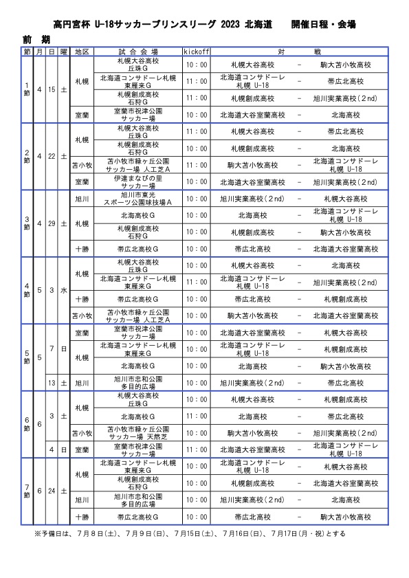 【高円宮杯 JFA U-18 サッカープリンスリーグ 2023 北海道】の日程・会場が決まりました。