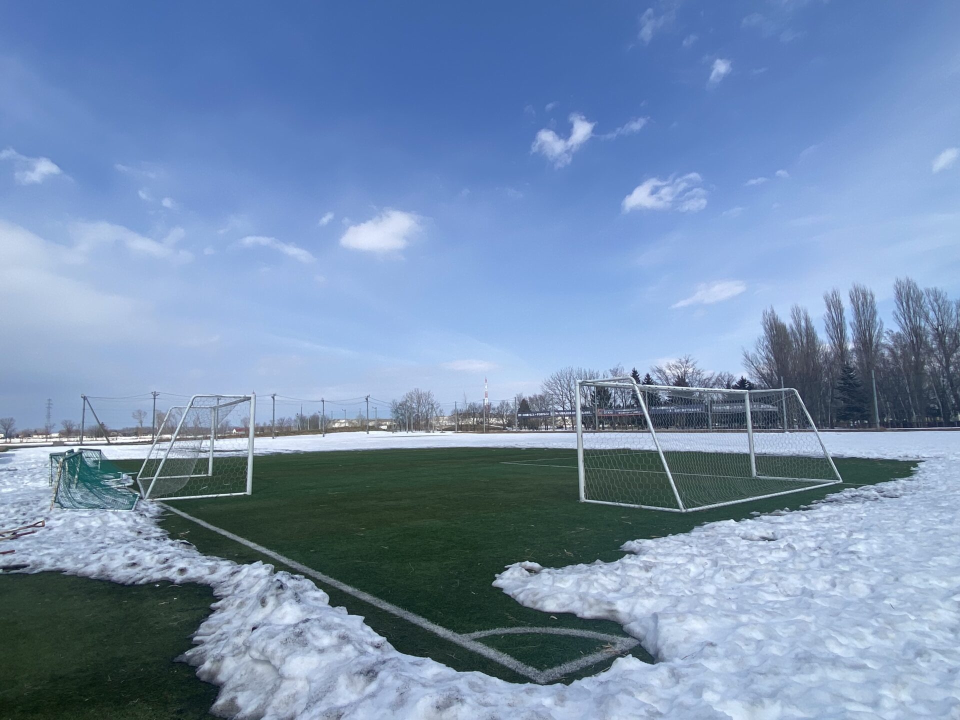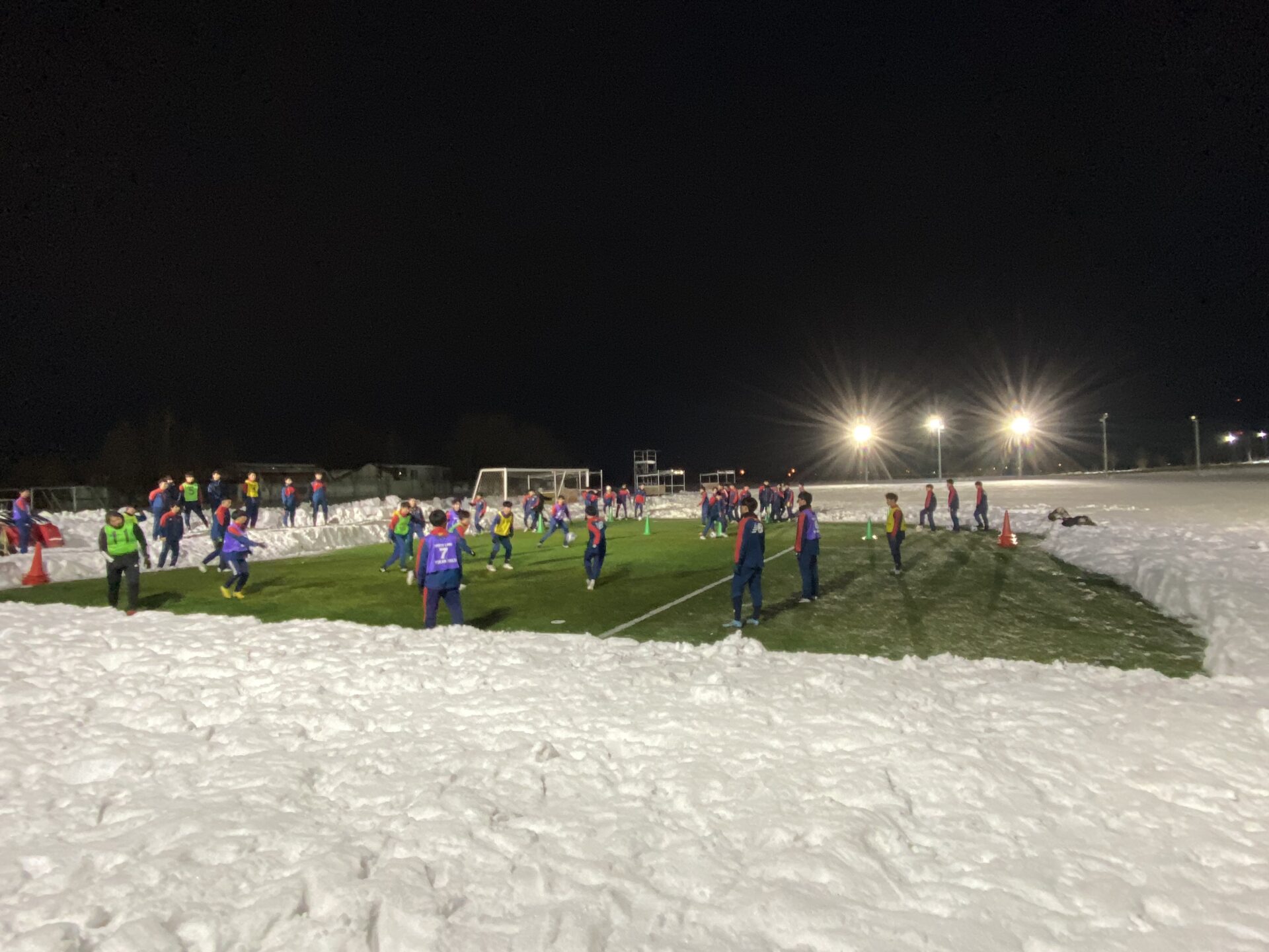 選手の献身的な除雪の成果もあり、丘珠グラウンドの雪も急速に減って人工芝が一部見え始めました!まだまだ狭いスペースではありますが、人工芝の上でトレーニングをスタートできています。