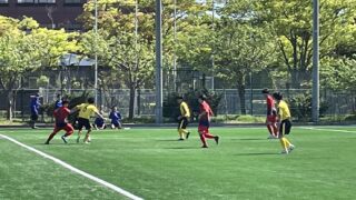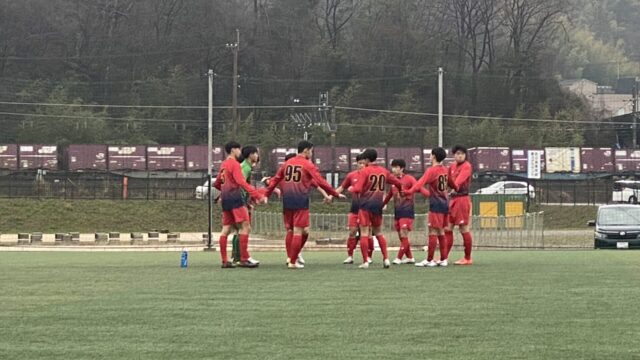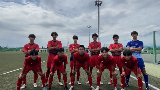 後半はさらにボールを保持して相手ゴールを目指します。2/山路③のクロスに8/山岸③が合わせますが、ゴールを捉えることができません。13/森①のフィードから抜け出した9/古内③がGKとの1 vs 1を迎えますが、シュートがゴールの枠を外れます。交代出場の5/山﨑③、11/坂本③も決定機を迎えますが決めきれず、0-2で敗れました。