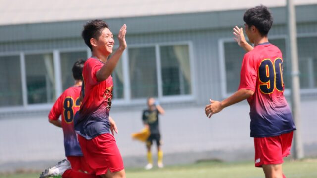 最後に、7 vs 7でゲーム形式のトレーニングを行いました。ボールを扱う技術は、間違いなく向上していると感じます。また、ボールを奪いに行く姿勢も強くなり、時間とスペースのない中で技術を発揮しなければならない環境が定着しています。