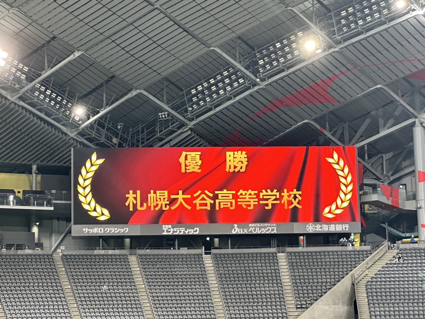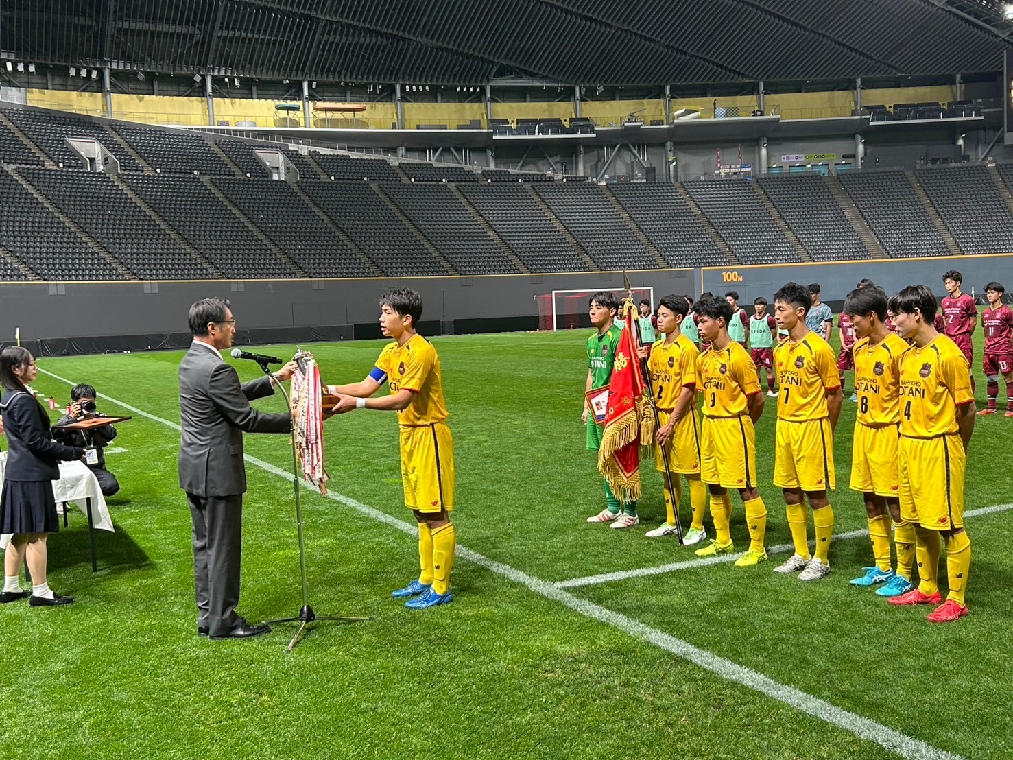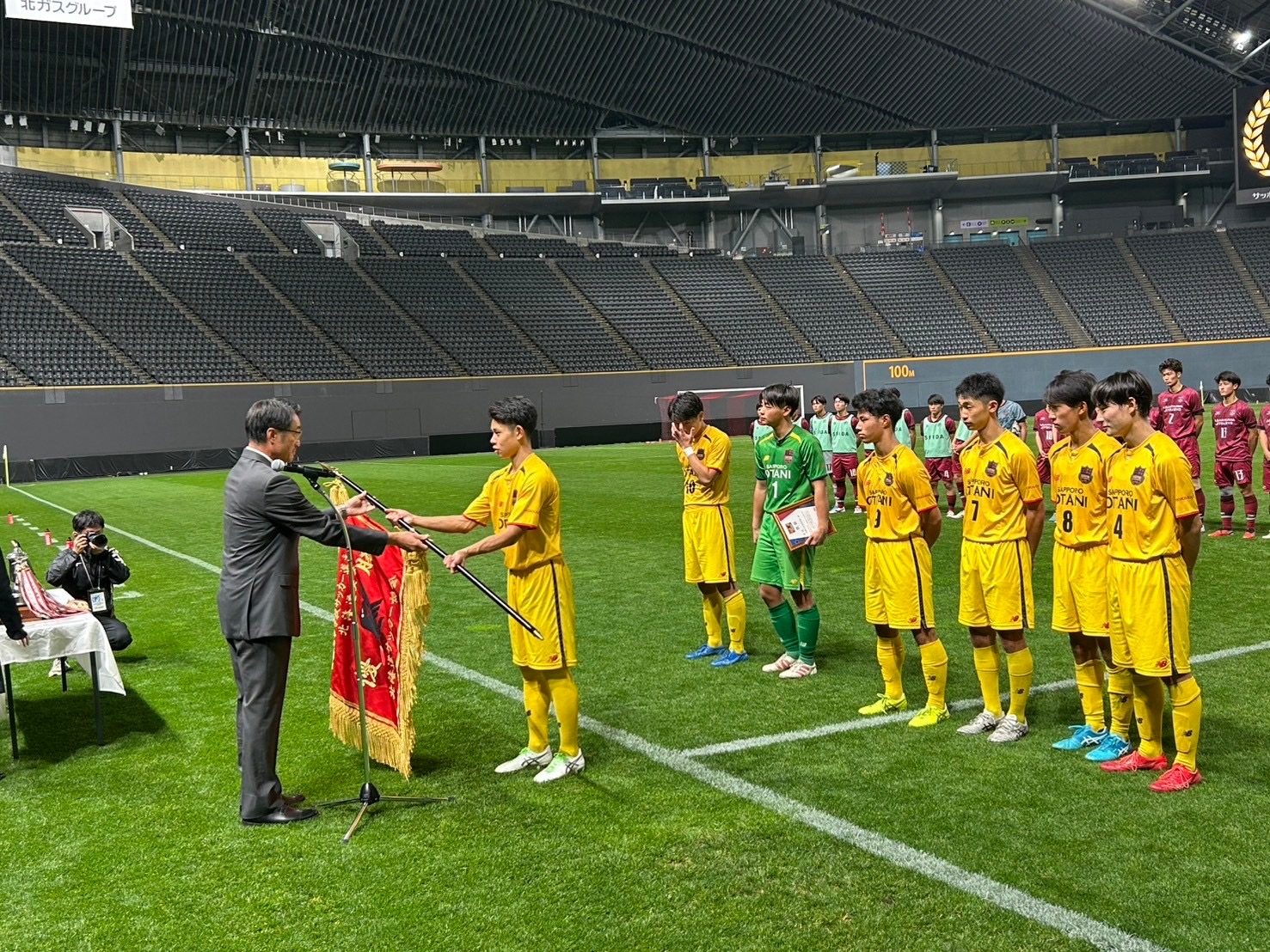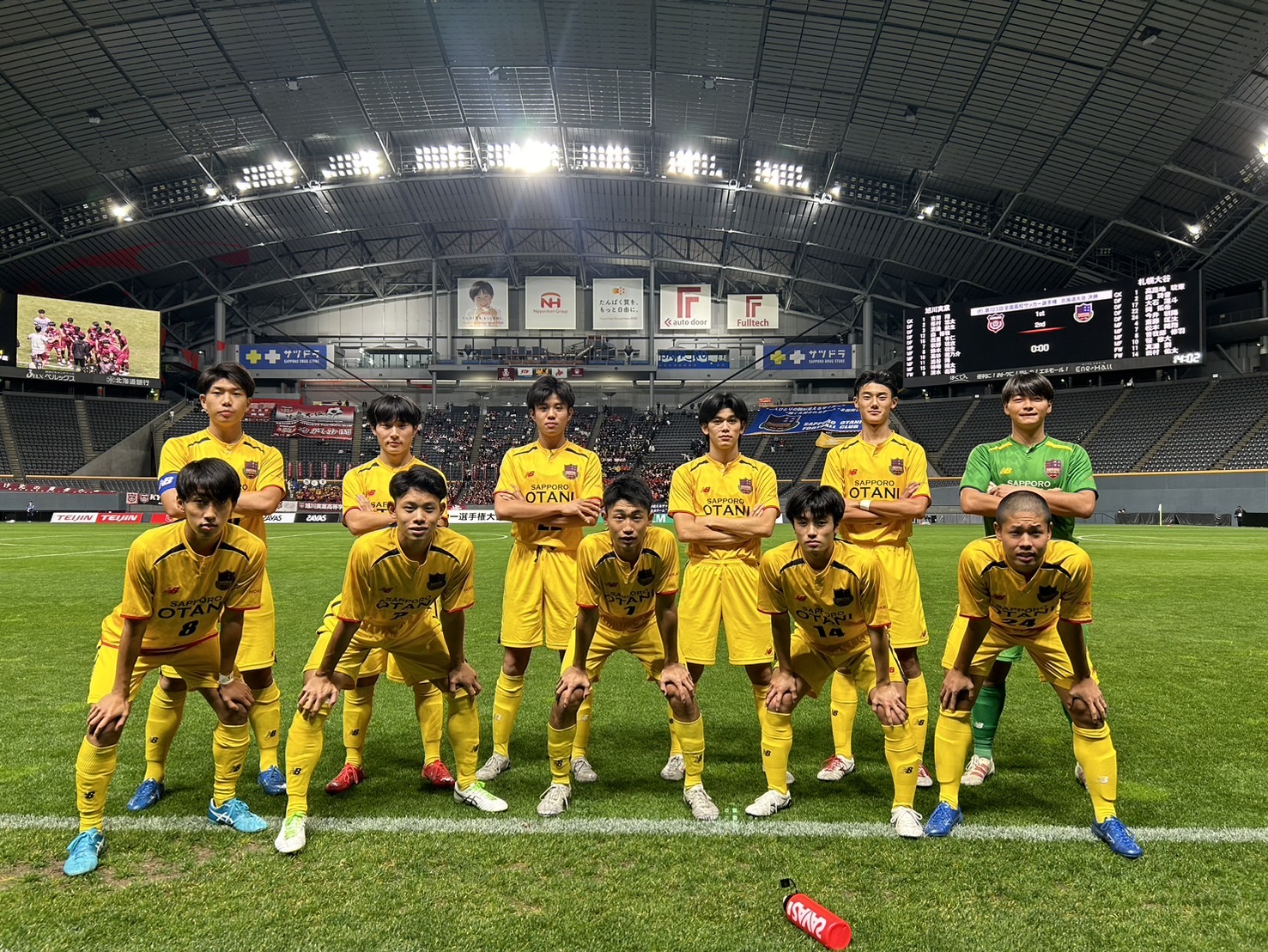 本校初の大和ハウス プレミストドームでの試合は、4,300人の観衆の中、高校総体決勝で敗れた相手に先制を許す苦しい試合でしたが、選手たちは慌てずに「札幌大谷サッカー」を表現して勝ち切ることができました。全校応援という素晴らしい舞台でサッカーができたことを心より嬉しく思います。