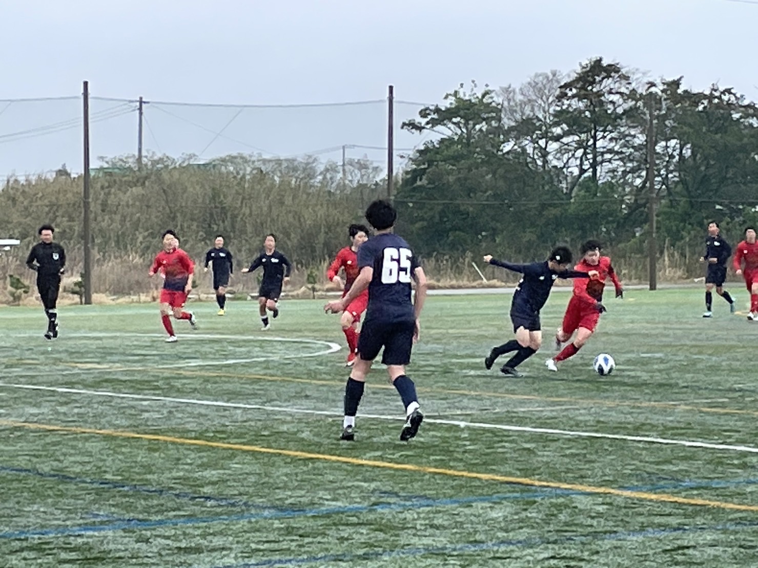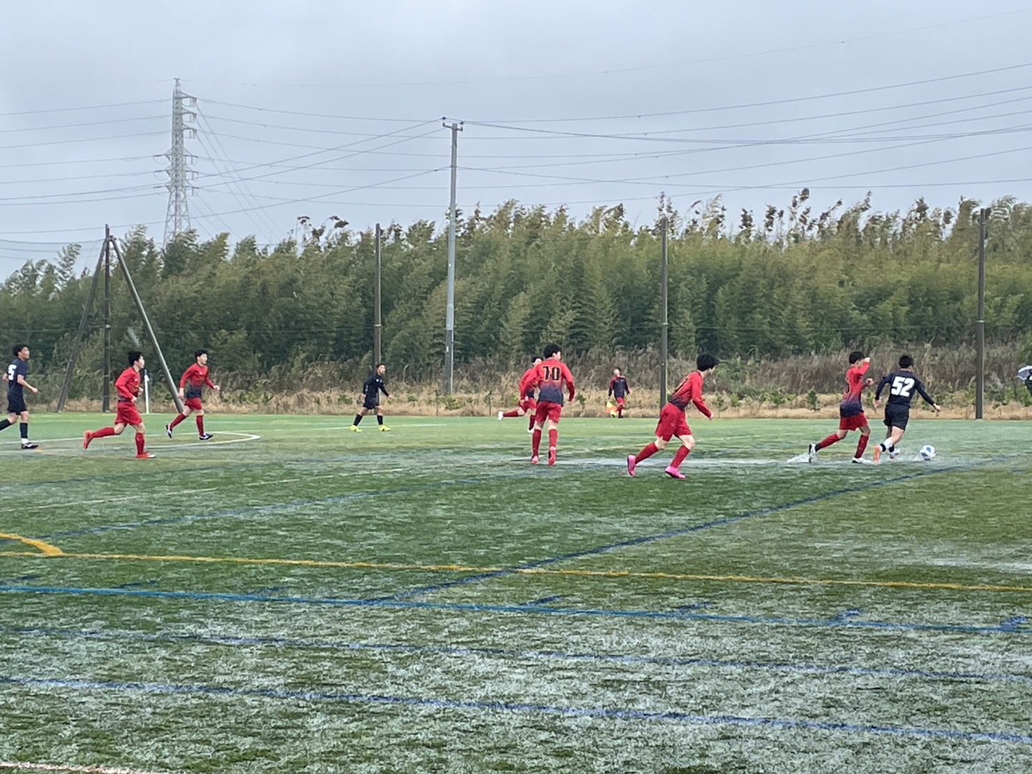 昨晩からの悪天候によりピッチがスリッピーな状況に加え、横からの強風もあり思うようにボールが繋がりません。50/植松②を中心に、序盤からシュートを打つが大きく枠を外れてします。その後はなかなか相手コートでボールを繋ぐことができずに押し込まれる展開となりますが、GK・DFラインを中心に集中した守りで失点を許さず、スコアレスで前半を折り返します。