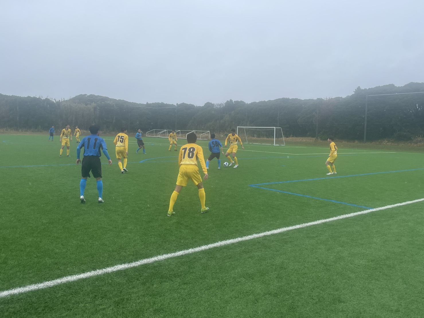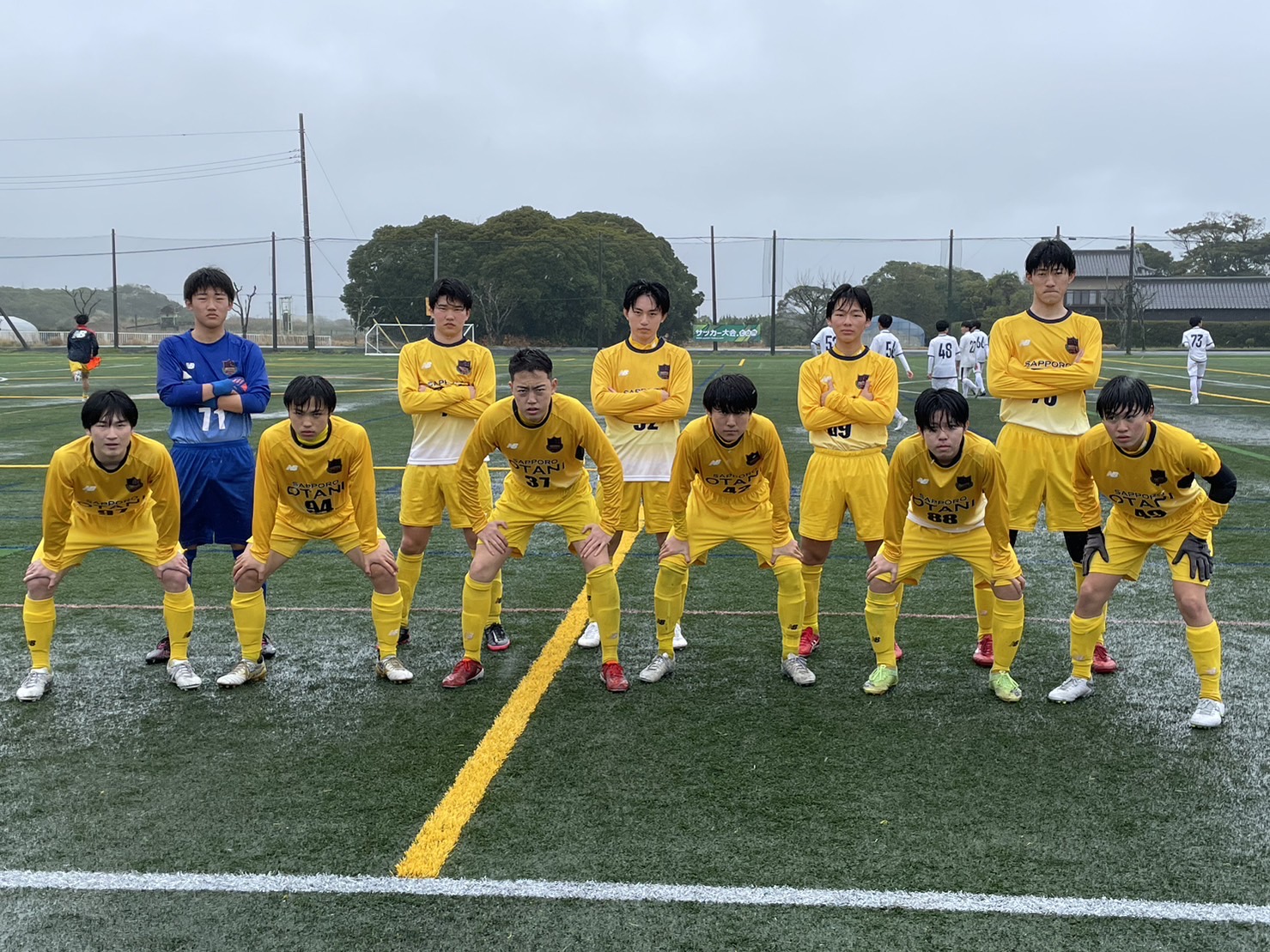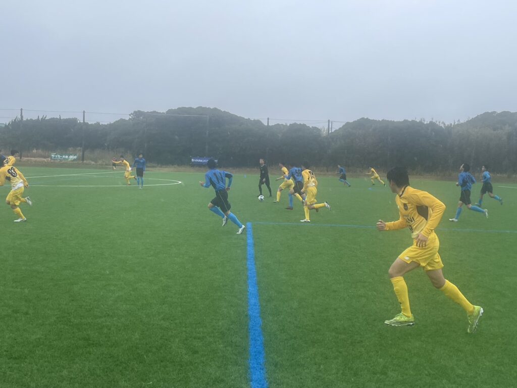 さらに雨が強くなった後半はお互いにダイレクトプレーの応酬で、リスクを負わない試合展開となりますが、切り替えの速さや球際の強さに改善が見られ、危なげなく試合を進めます。65分に途中交代の89/番場①がGKのポジションを見て遠目からループシュートを決めて追加点をあげ、4-1で勝利しました。