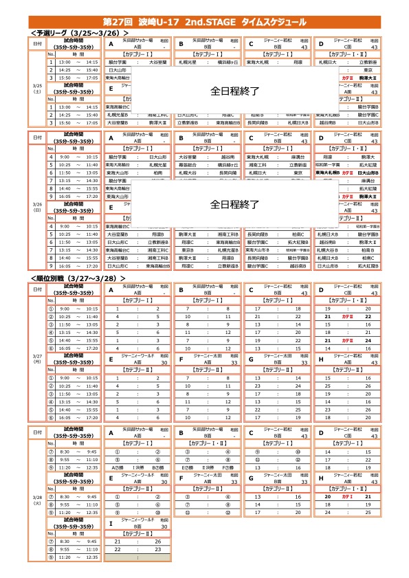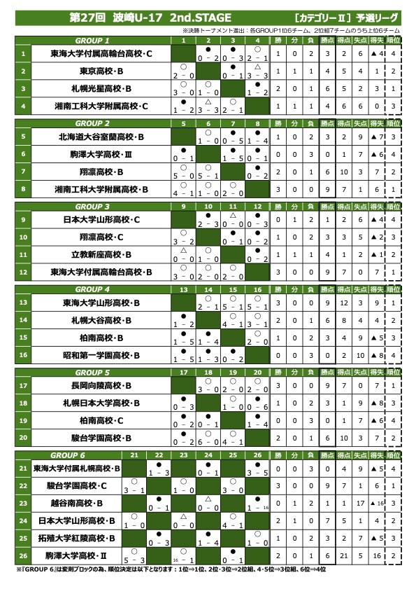 波崎U17 2nd STAGE 予選ラウンド2日目・結果