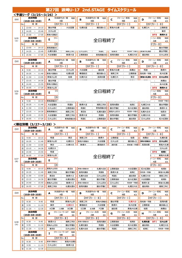 波崎U17 2nd STAGE 決勝ラウンド1日目・結果