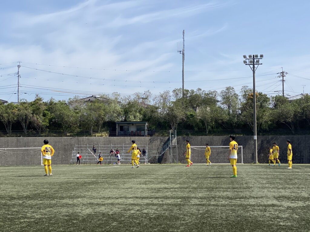 九州大学サッカーリーグ1部4位の強豪・日本文理大との対戦は、立ち上がりから大学生のプレー強度に負けないスピードでチャレンジし、一進一退の攻防を繰り広げます。12分、57/栗塚②の見事なシュートで得たCKで、47/田頭②のキックを80/森①がバックヘッドでゴールへ流し込み、先制点をあげます。徐々に押し込まれる時間が増えますが、慌てずにボールを保持して優位に試合を進めます。30分、中盤のミスから相手にチャンスを与え、ゴール前で粘りを見せるものの決められて1-1に追いつかれ、前半を終えます。
