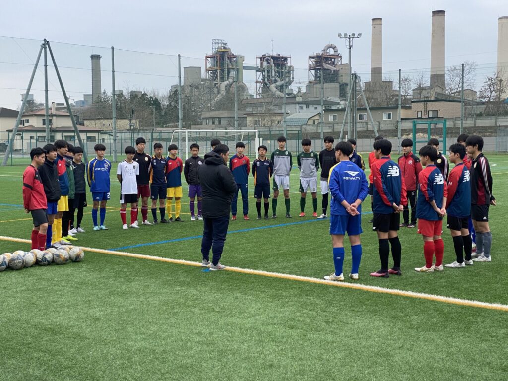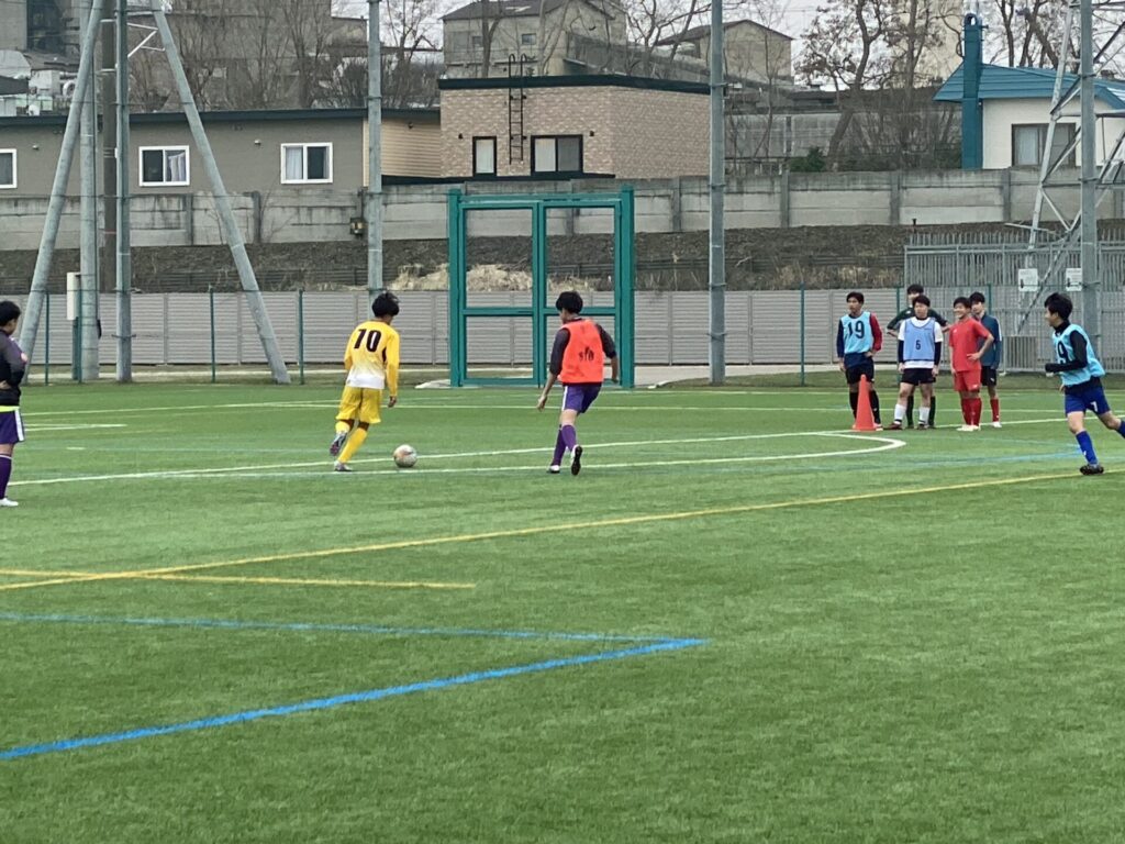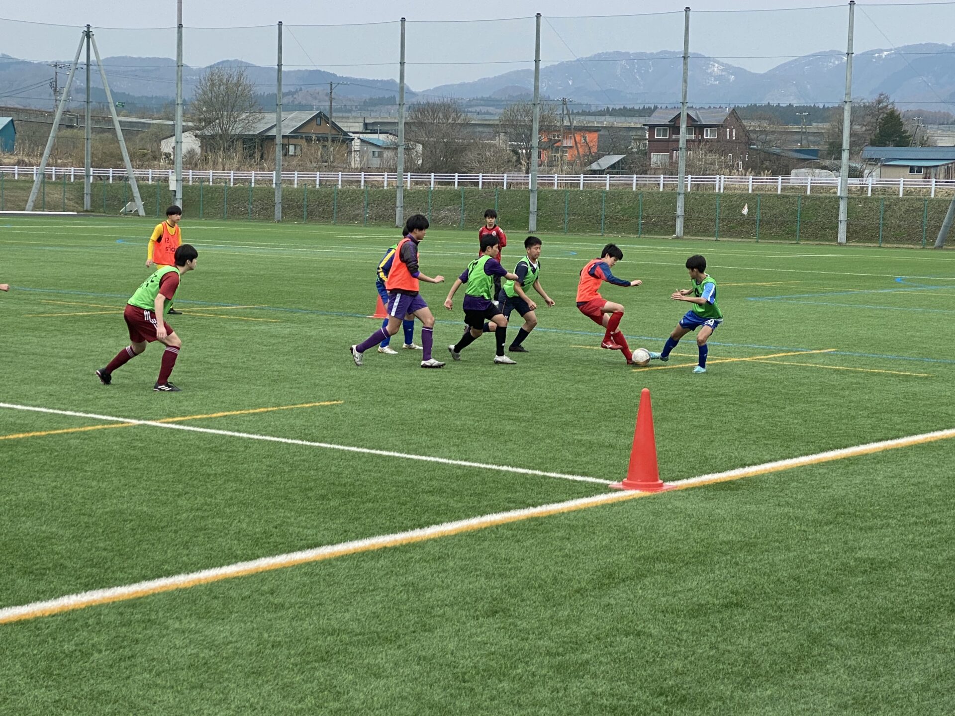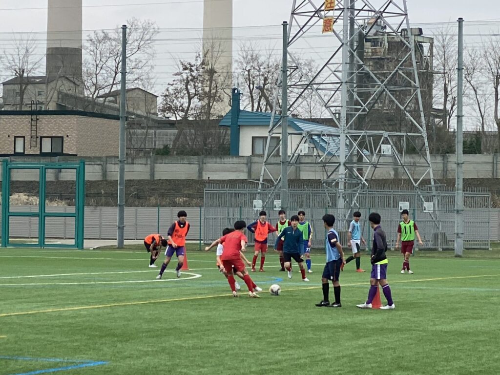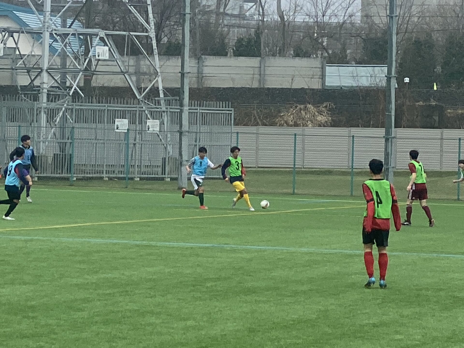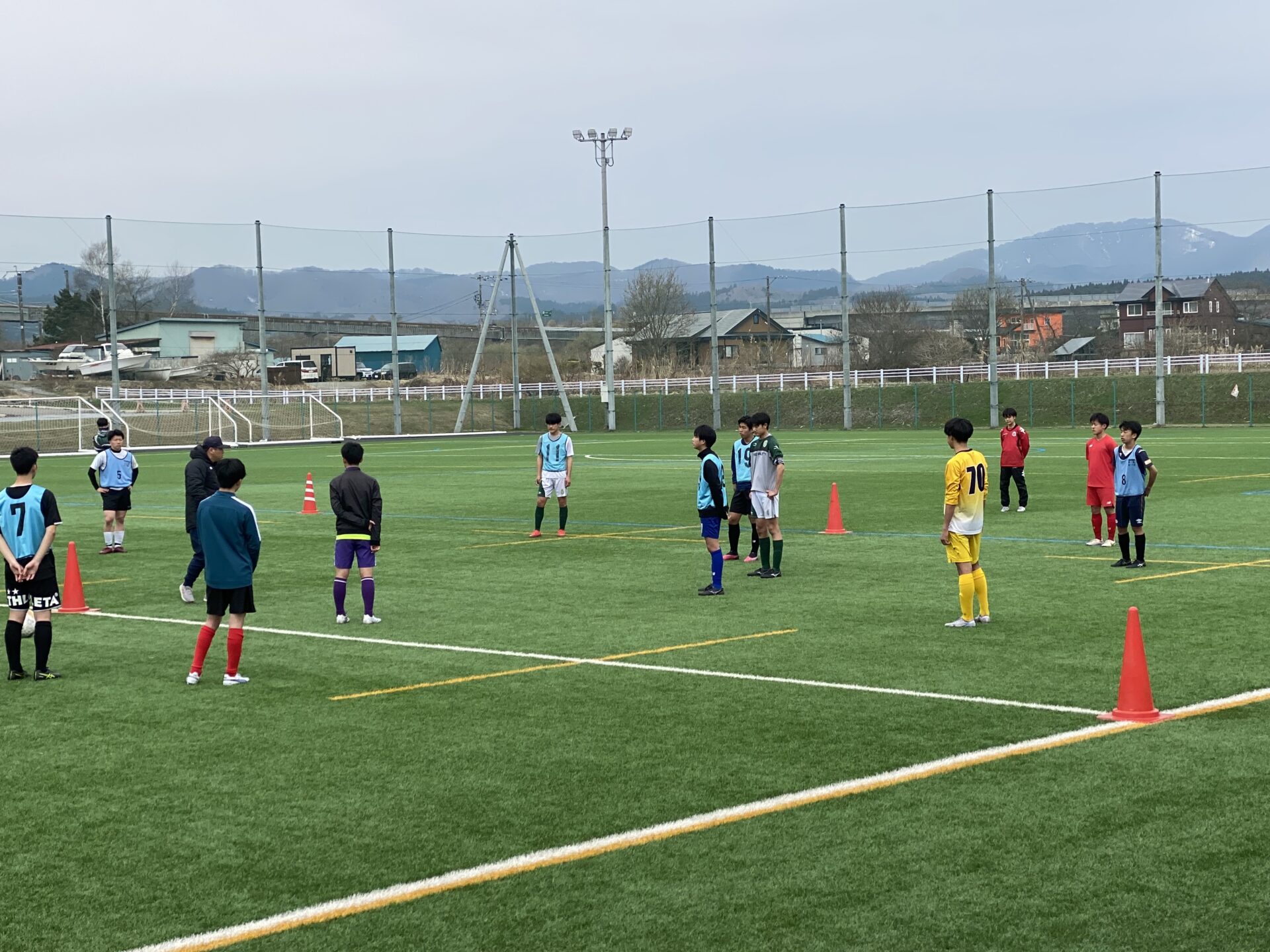 2日目・4月6日(木)は、北斗フットボールパークでトレーニングとミーティング、紅白戦を行いました。