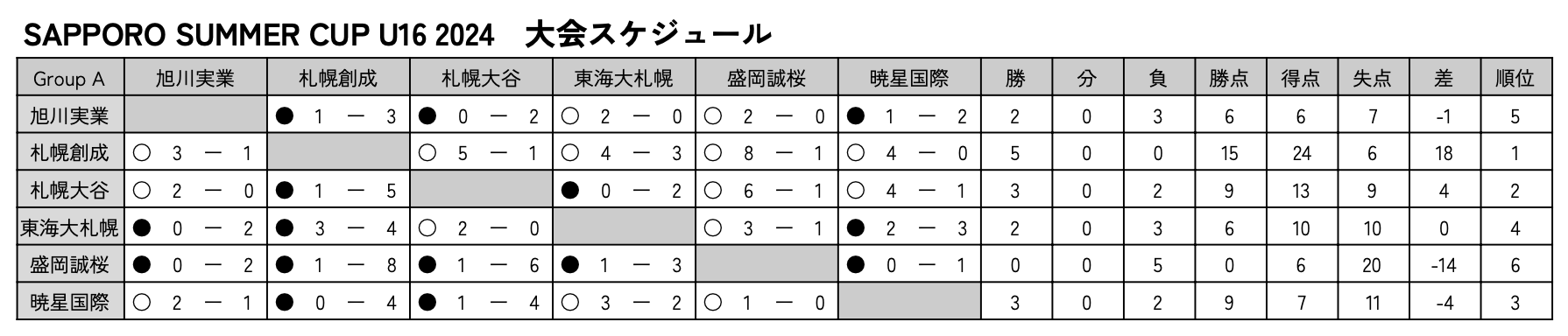 SAPPORO SUMMER CUP U16 2024の結果