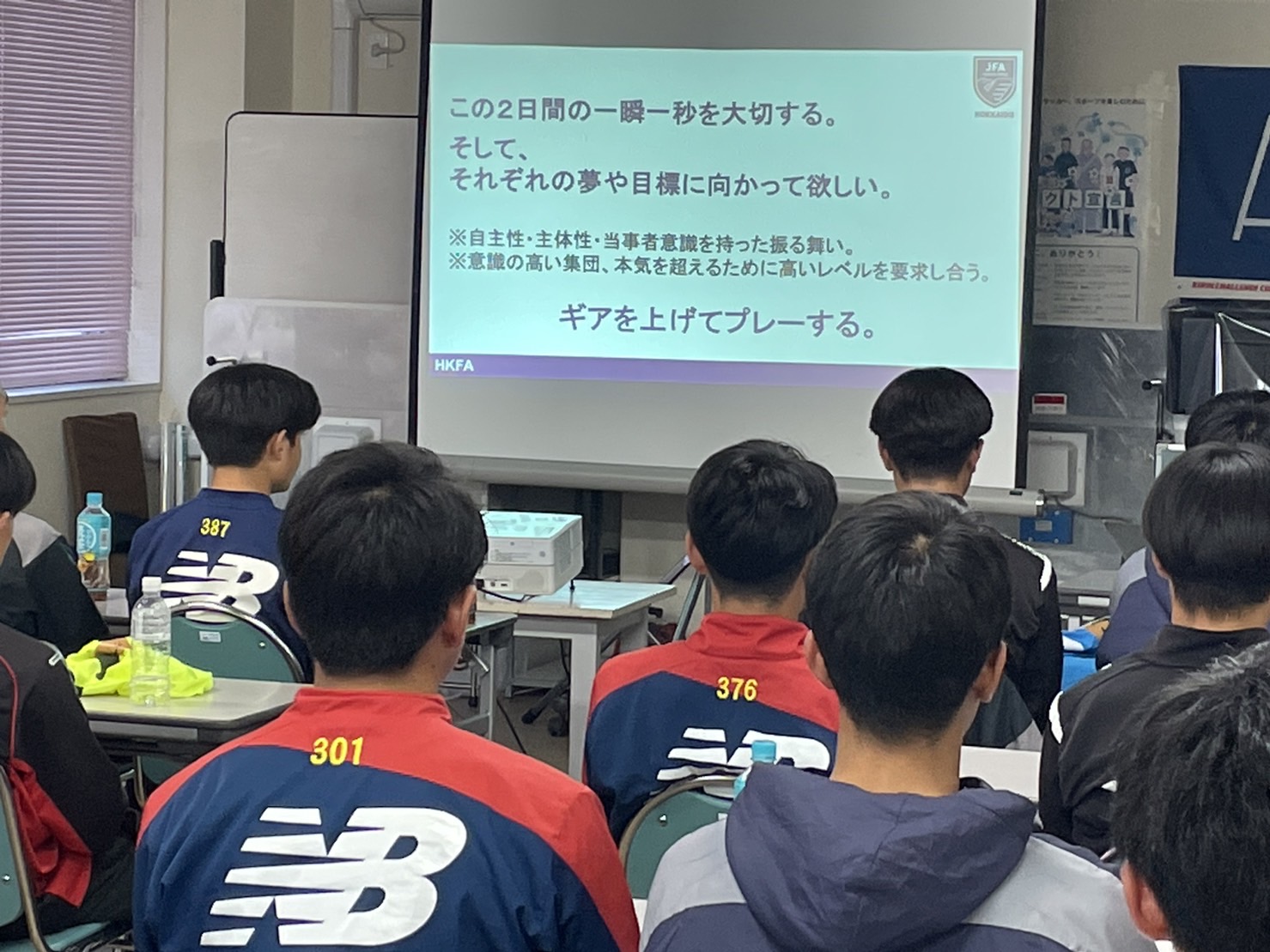 1日目の午前はレクチャーを受けた後にトレーニング、午後は紅白戦でした。