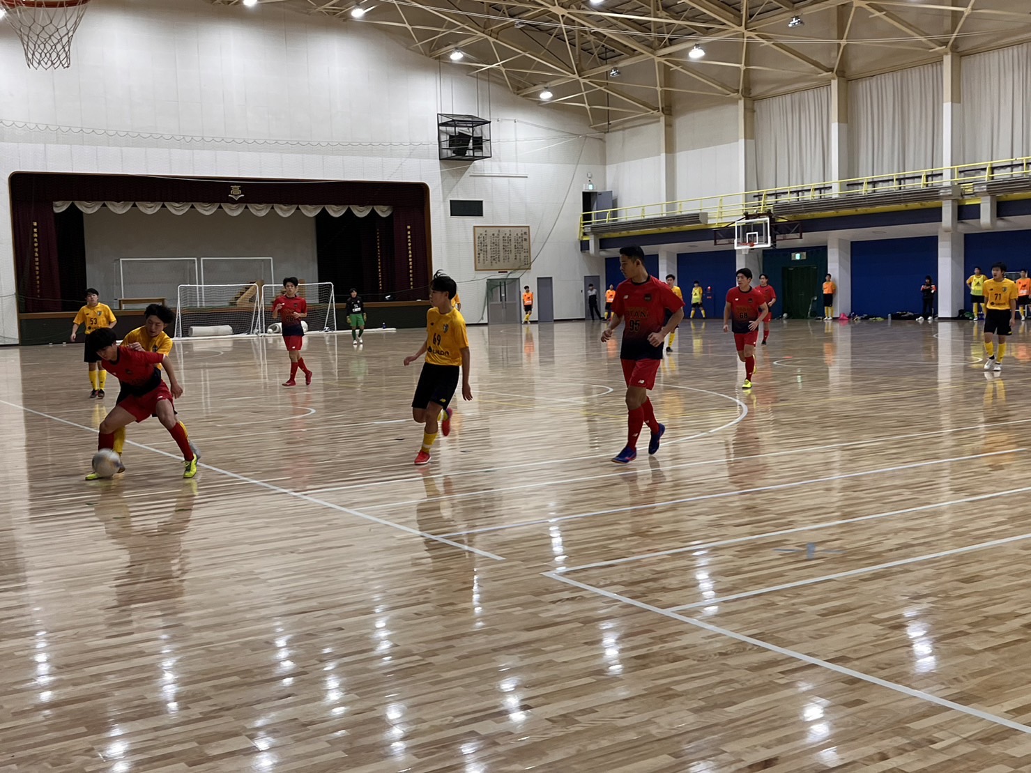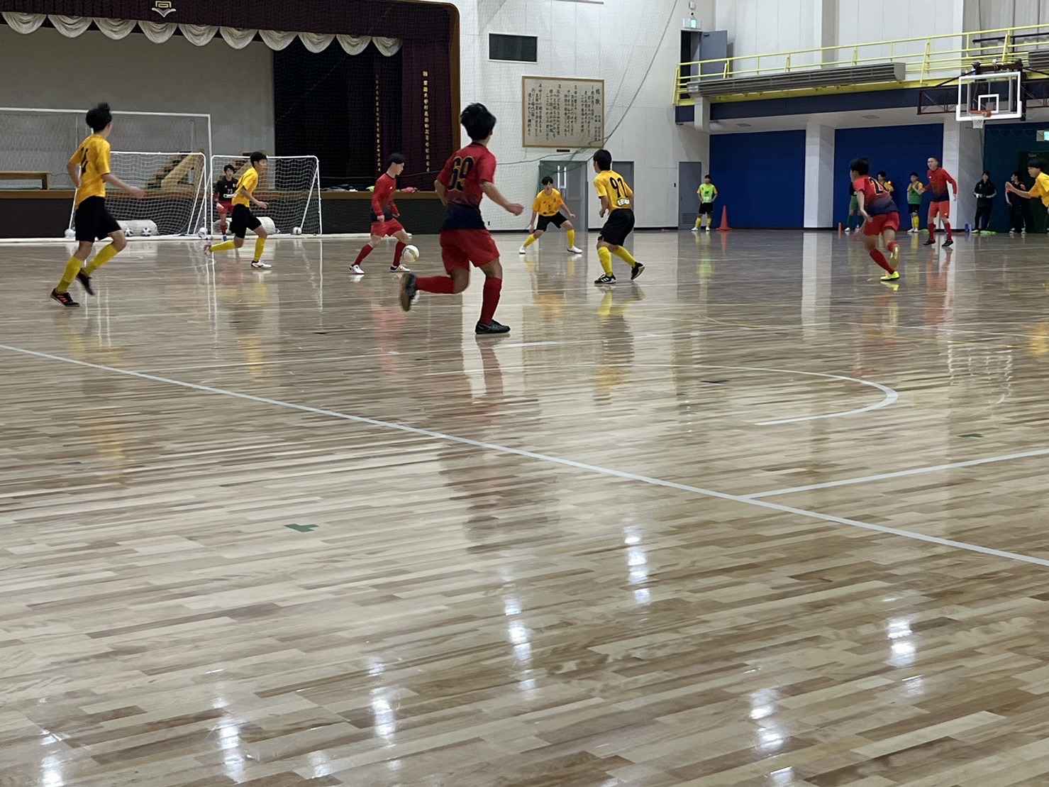 体育館でのトレーニングマッチでは、相手のプレスが早い中でも正確な技術と素早い判断が必要となります。特に、相手ゴール前での崩しに課題が見られました。